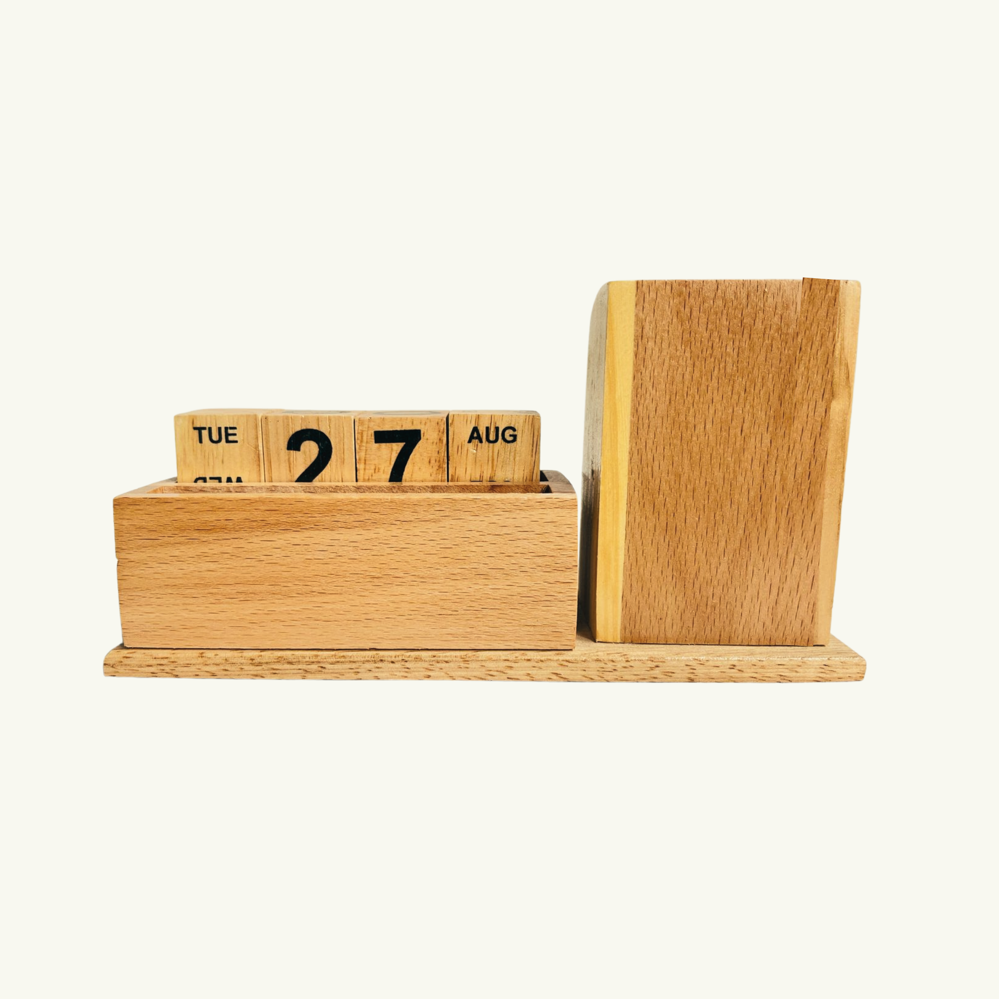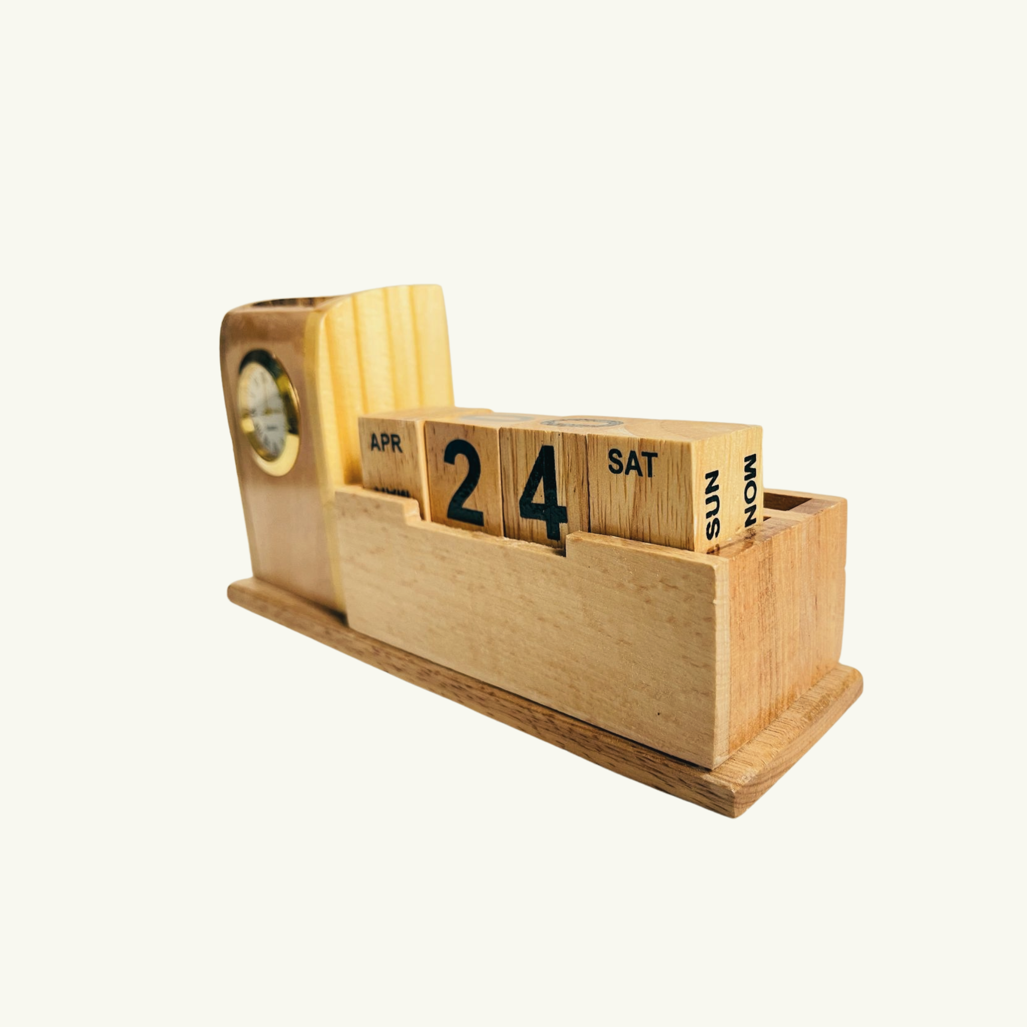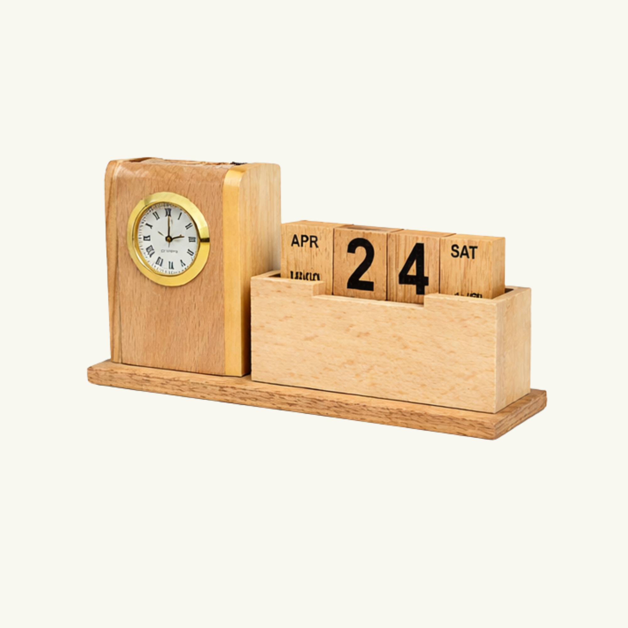 Personalized Wooden Desk Organizer Pen Holder for Office Docking Station with Date Clock